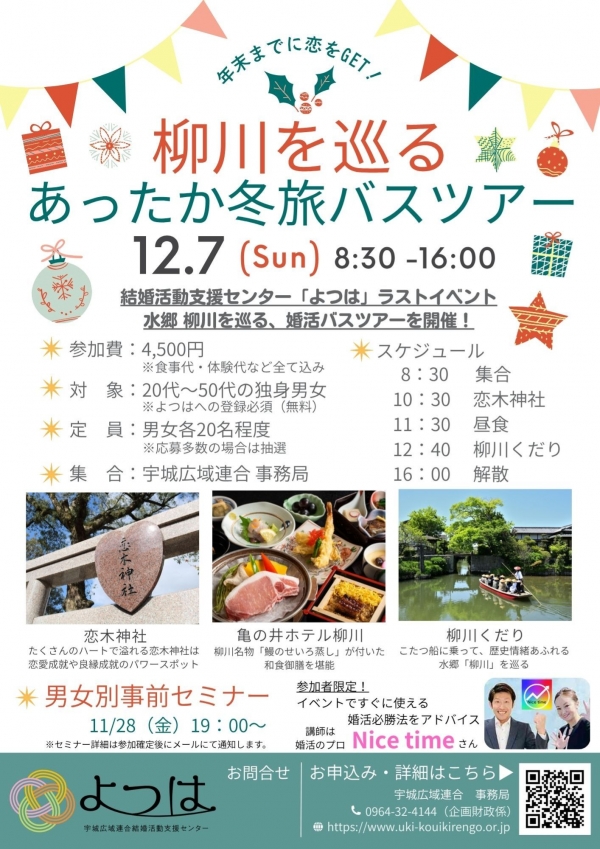 年末までに恋をGET!柳川を巡る、あったか冬旅バスツアー